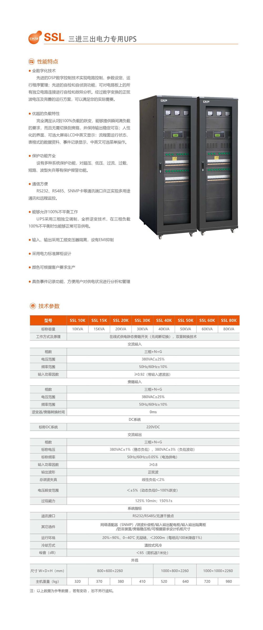 EKSI愛克賽全系列電源產(chǎn)品——愛克賽SSL系列三進三出電力專用UPS電源